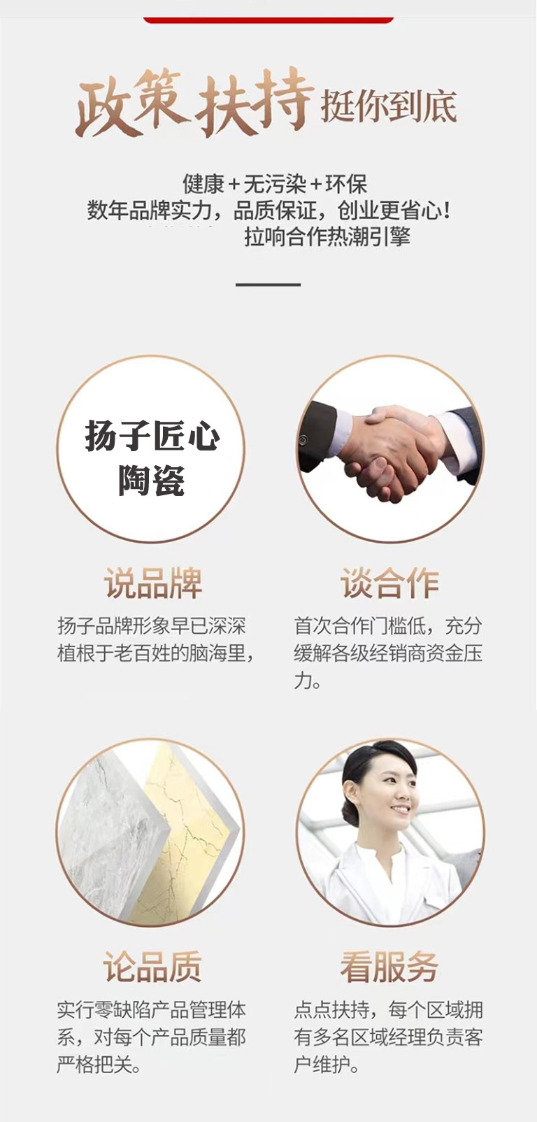 一、品牌初心:逆势而上的匠心传奇 2019年,当房地产寒冬笼罩整个家居行业,无数从业者在迷茫中挣扎,赵先甫夫妇——两位在家具行业深耕数十年的经销商,却在逆境中看到了破局的曙光。他们毅然决然地告别为他人品牌代工的岁月,怀揣着打造自主商业版图的梦想,跨界进军瓷砖制造业,奔赴中国陶瓷之都·佛山,开启从零开始的创业征程。 作为行业的“新生”,他们在佛山经历了无数次的质疑与考验。从瓷砖的生产工艺到品质标准,从品牌建设到市场拓展,每一个环节都从零学起。正是这份“不疯魔不成活”的执着,支撑他们度过了漫长的筹备期。2020年,“扬子匠心瓷砖”在佛山正式诞生,凭借卓越的品质和真诚的服务,迅速赢得市场认可与合作伙伴的信赖。 扎根佛山源头工厂,我们始终坚持 “每一片砖,都是创业人的人品” 的品牌理念。历经万小时耐久测试,严格把控耐磨、抗脱釉等关键指标,品质远超行业标准;以山东省为中心建立智能中转仓,高效服务山东、河北、安徽、河南等全国市场,确保现货速发、工期无忧;更推出 “无条件退换货,解释权归客户所有” 的服务承诺,用匠心与诚意筑牢品牌根基。 二、市场机遇:精准对接2025家装新趋势 2025年,瓷砖行业正迎来“绿色环保、数字智能、高端定制”三大转型浪潮。在超3800亿的市场规模中,品牌集中化趋势日益凸显。与此同时,家装市场进入“品质与效率”双轮驱动时代:装饰公司既要满足年轻消费者对环保、颜值、性价比的多元需求,又要应对供应链不稳定、获客成本高、利润空间压缩等行业痛点。 扬子匠心紧贴市场脉搏,依托佛山成熟的陶瓷产业集群与先进制造能力,打造全系列产品矩阵:涵盖厨房专用耐磨砖、大规格岩板、天然大理石质感系列等,完美适配侘寂风、现代简约、轻奢等多种流行风格。既满足刚需家装的高性价比要求,又契合高端项目的品质与美学需求,助力装饰公司提升方案竞争力,抢占品质家装市场先机。 三、合作核心:装饰公司“零门槛”共赢方案 我们不止于提供优质瓷砖,更致力于打造 “佛山源头工厂共同创业平台” 。针对装饰公司、代理商及分销商,推出“全支持、零顾虑、高回报”的专属合作政策,无需行业经验,即可轻松开启共赢之旅。 四大核心优势 1. 源头直供,利润最大化 佛山工厂直签,剔除所有中间环节,同品质产品价格比传统代理低20%-30%。以100㎡家装项目为例,仅瓷砖成本即可节省3000元以上,显著提升项目利润空间。 2. 品质溯源,售后无忧 万小时耐久测试保障,每片瓷砖均可溯源;“无条件退换货”政策彻底解决售后纠纷,提升客户满意度,维护您的品牌声誉。 3. 全品类覆盖,方案全能 从厨房耐磨砖到客厅大板,从工装工程砖到别墅定制岩板,满足多元场景需求,助力您打造更具竞争力的整体解决方案。 4. 智能仓配,工期保障 以山东省为中心辐射全国的智能中转仓网络,确保高效供货,避免缺货延误,提升项目交付效率。 三大赋能体系 供应链赋能 · 工厂直供价,无中间加价 · 专业选品指导 + 施工技术支援 · 零库存压力,无条件退换货保障 运营管理赋能 · 无需自建仓储体系,工厂协同优化备货方案 · 1对1专属顾问全程跟进,快速响应各类需求 · 免费提供产品手册、施工规范等标准化资料 营销推广赋能 · 数字化营销工具包:引流素材、话术模板、视频脚本 · 线下活动全案支持:家装节、品鉴会、客户沙龙策划 · 免费设计宣传物料:海报、画册、展架、单页 四步启动合作 1. 咨询对接:提交意向,12小时内专属顾问联系 2. 实地考察:预约参观佛山工厂/山东中转仓(可选) 3. 签约启动:零加盟费、零保证金,快速签约 4. 全面赋能:获取全系支持资源,立即开展业务 |